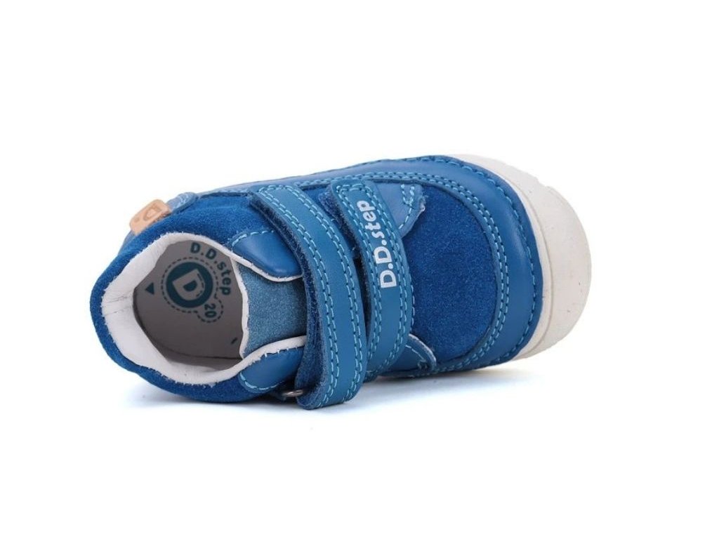 D.D.Step 082 Bermuda Blue sú štýlové barefoot topánky v sýtej modrej farbe, ktoré sú stvorené pre zdravý pohyb. Vďaka vylepšenej konštrukcii rady 082 a inovatívnemu 3D šitiu ponúkajú maximálnu ohybnosť a nízku váhu. Tieto celokožené topánky rešpektujú prirodzený tvar chodidla, poskytujú dostatok miesta pre prsty a sú ideálnym spoločníkom na jarné a jesenné dni pre malých objaviteľov.