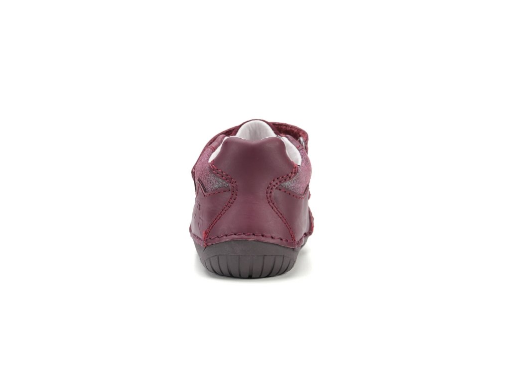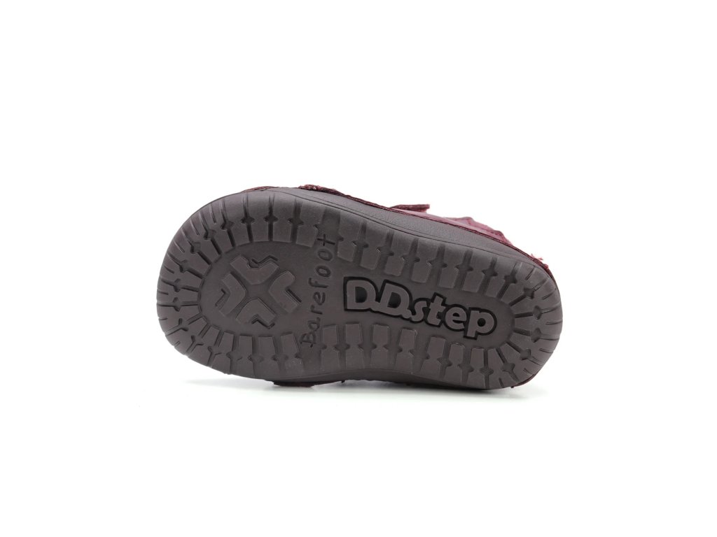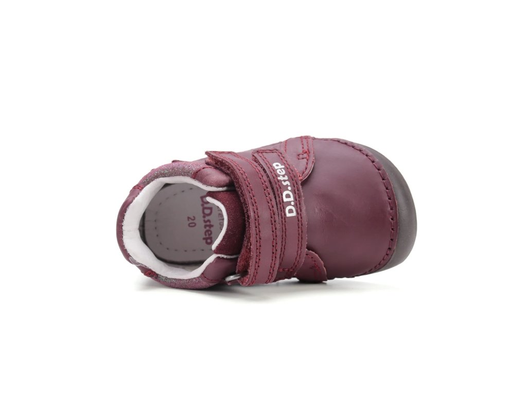Model D.D. Step 070 v odtieni bordovej spája kvalitu prírodných materiálov s obľúbeným detským dizajnom. Zvršok z hladkej kože dopĺňajú detaily z brúsenej kože s flitrami a nápaditá aplikácia mačičky na boku topánky. Obuv je navrhnutá tak, aby chránila nôžku, no zároveň jej poskytovala úplnú voľnosť pohybu.