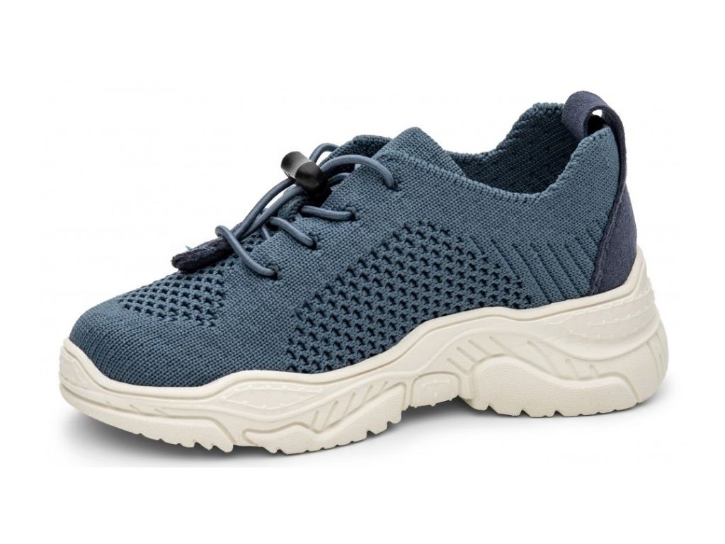 Trendy chlapčenské tenisky v modrej farbe, ktoré spájajú športový štýl s maximálnym pohodlím. Vďaka priedušnému elastickému textilu sa topánka dokonale prispôsobí šírke chodidla, zatiaľ čo pevný opätok a podpora klenby zabezpečujú zdravý vývoj nohy. Ideálna voľba pre na aktívne jarné a jesenné dni.