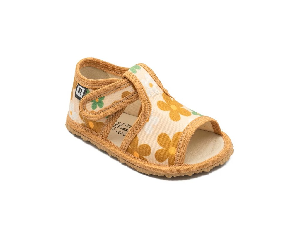 Tieto béžové papučky sú ideálnou voľbou pre zdravý vývoj chodidiel. Kombinujú tradičnú slovenskú kvalitu RAK s barefoot prvkami: majú výrazne flexibilnú podošvu s nulovým dropom (tenkú a rovnú) a dostatok priestoru pre detský palec. Sú vyrobené zo 100% bavlny a ECO kože. Perfektné ako pohodlná a zdravá domáca obuv.