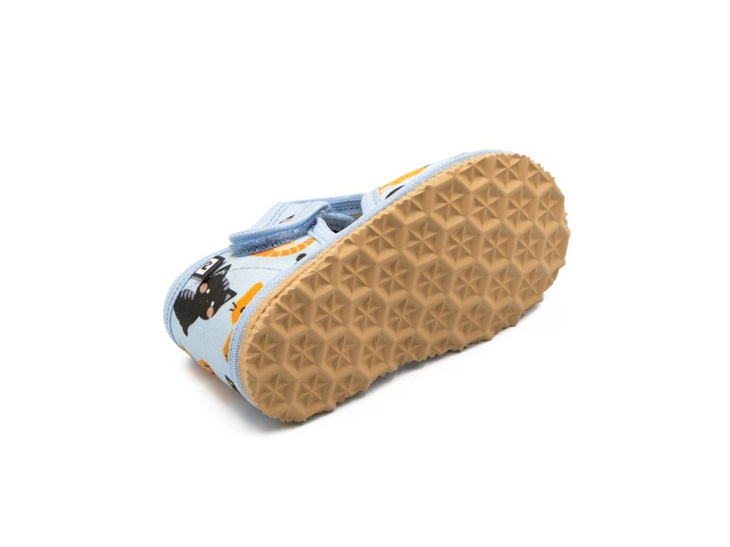 Tieto papučky sú vybavené inovatívnou stielkou z pamäťovej peny a ECO kože, ktorá sa optimálne prispôsobí 3D tvaru detského chodidla. Majú pružnú podrážku s klinom pre tlmenie nárazov pri skákaní a behaní na tvrdých povrchoch. Motív mačiek je veselý, strih je priestranný (pre dominantný palček) a výroba je tradične slovenská.