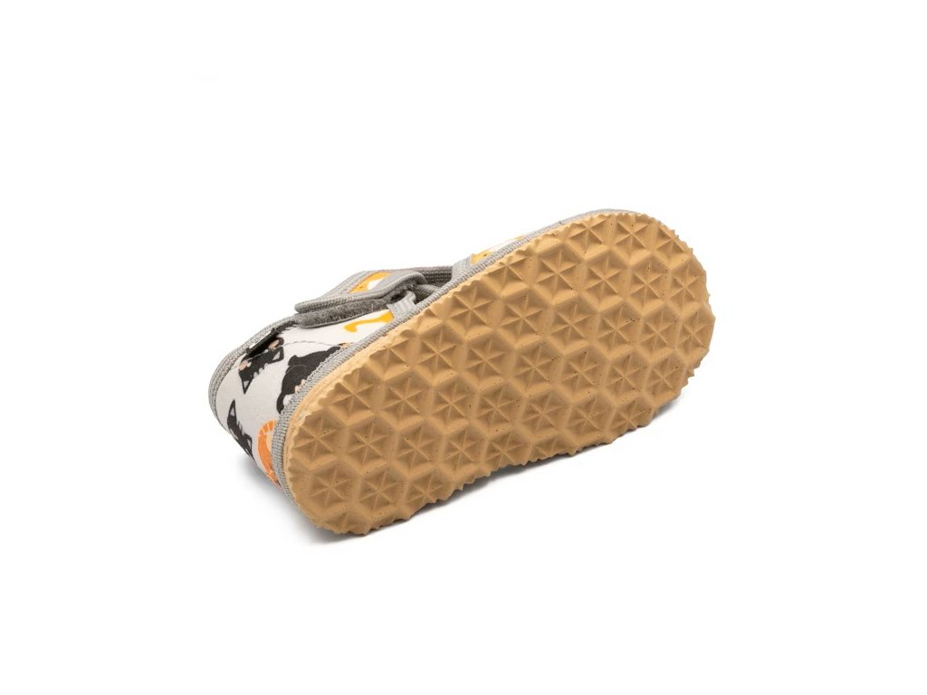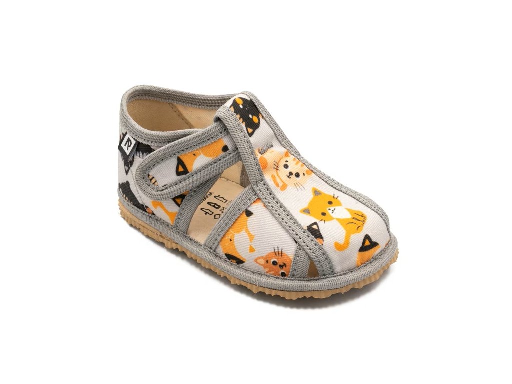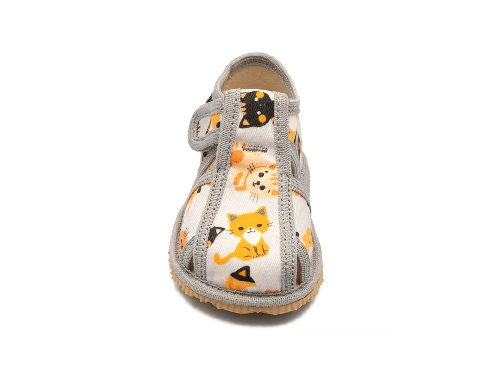 Tieto papučky sú vybavené inovatívnou stielkou z pamäťovej peny a ECO kože, ktorá sa optimálne prispôsobí 3D tvaru detského chodidla. Majú pružnú podrážku s klinom pre tlmenie nárazov pri skákaní a behaní na tvrdých povrchoch. Motív mačiek je veselý, strih je priestranný (pre dominantný palček) a výroba je tradične slovenská.